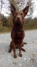 Der Schnauz wird langsam Grau, ansonst wunderschöne Fellfarbe. Altersschätzungen landen immer noch unter 10 Jahren.